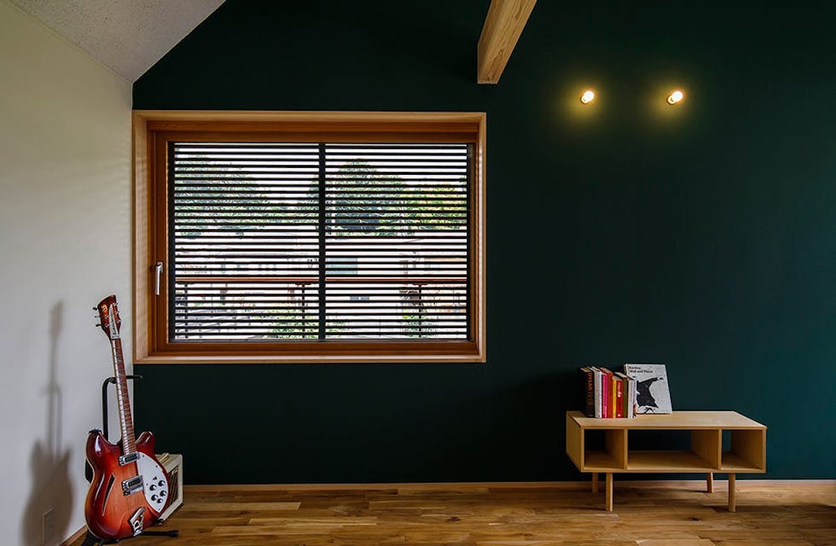東京都内。幹線道路から少し入ったのどかな川沿いに、三角屋根の一軒家が竣工しました。ガラリの網戸が印象的なその家は、すべての開口部を夢まどシリーズで統一したご夫婦と愛猫のための新居です。ブリティッシュグリーンの外壁に夢まどのフレームがアクセントを添える外観は、一見派手だけど、周囲の環境にすでにしっかりと溶け込んでいます。